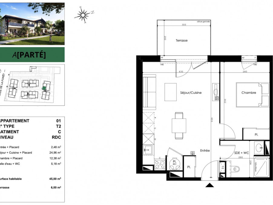 La future résidence APARTE située dans un quartier recherché et proche de toutes commodités, vous propose un appartement neuf T2 de 45 m² conforme à la norme RE 2020. Disposant seulement d'un étage, cette résidence s'intègre harmonieusement dans son environnement. L' appartement sera équipé d'une cuisine équipée, d'un espace extérieur privatif de 6 m² et d'une place de parking. D'autres typologies d'appartements sont également disponibles.