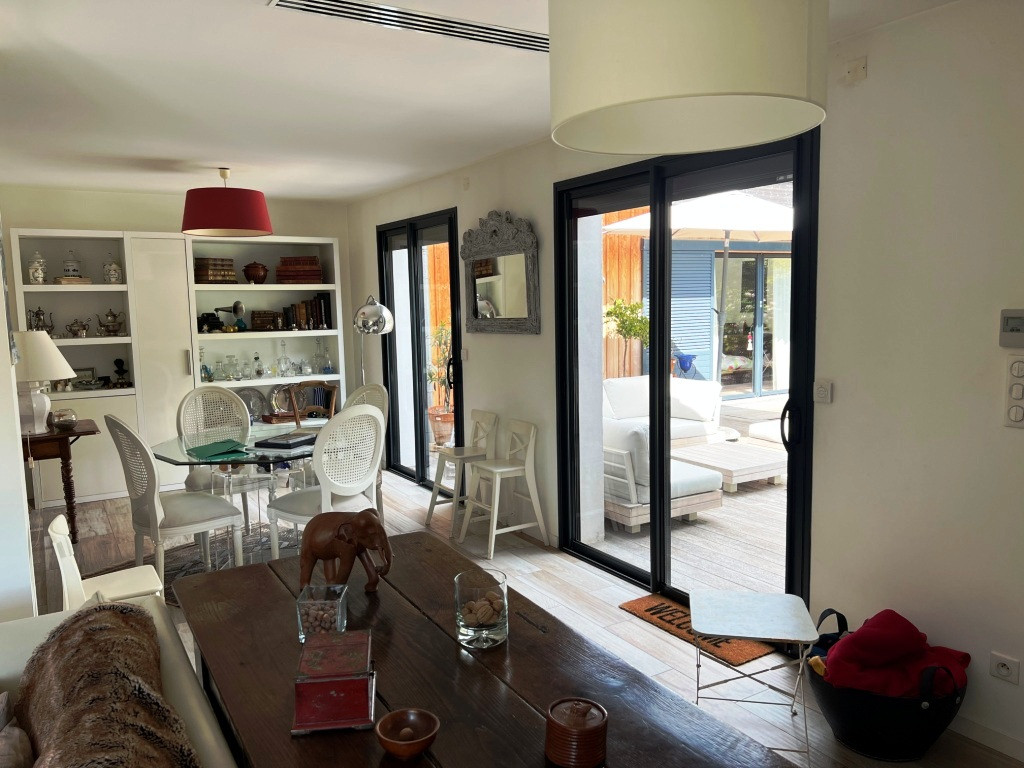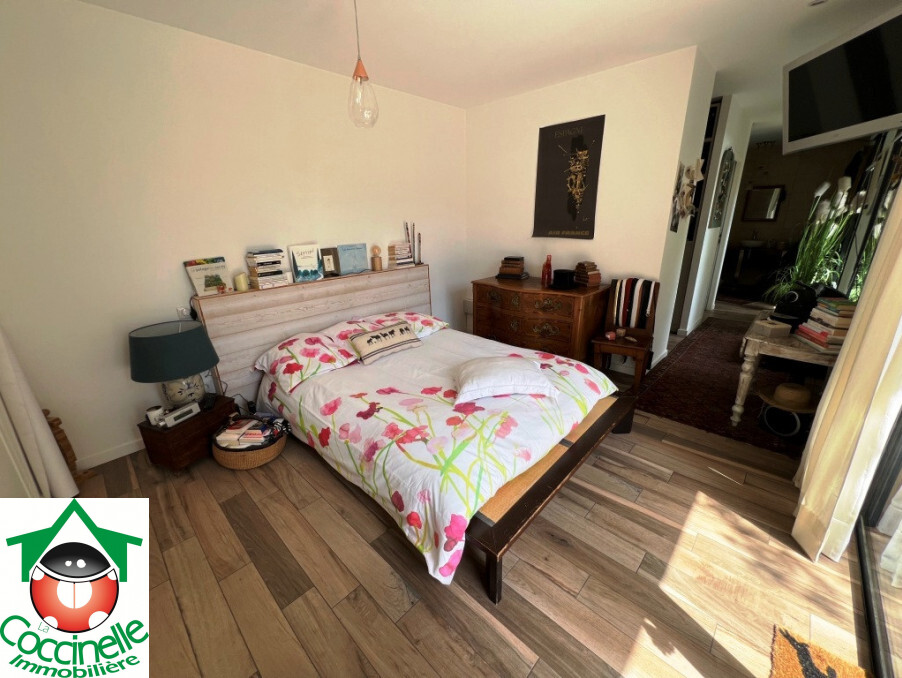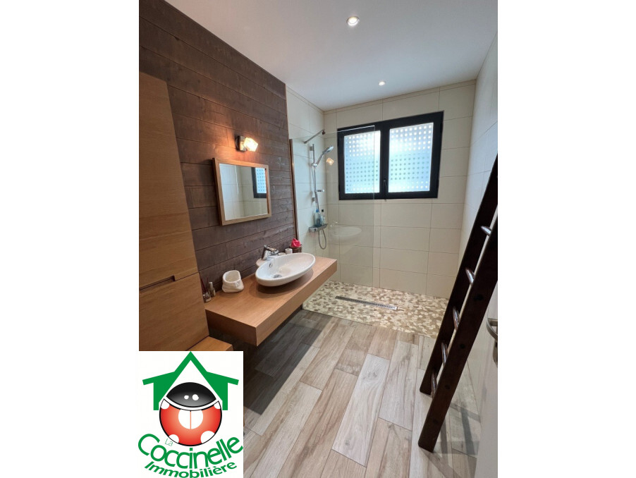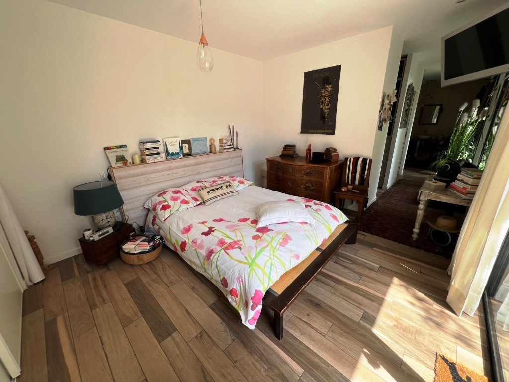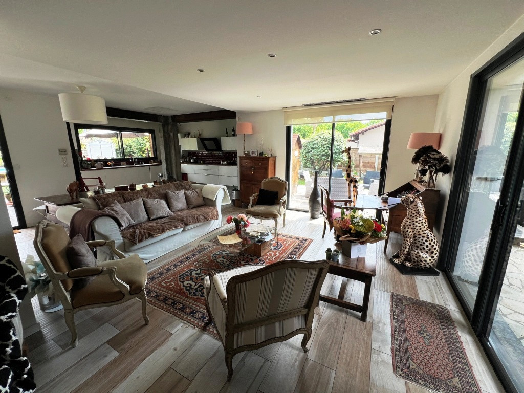 Au rez de chaussée, la maison dispose d'un espace de vie chaleureux offrant un volume généreux (83m²) empli de lumière (triple exposition) qui est complété par une cuisine ouverte équipée, une vaste suite parentale de 29 m² comprenant une salle de douche avec baignoire, un w.c indépendant et un dressing donnant sur la terrasse, deux chambres, une salle d'eau et un w.c et une buanderie.