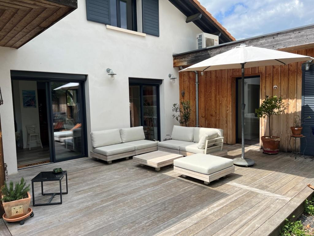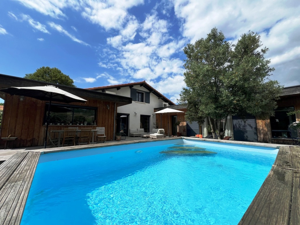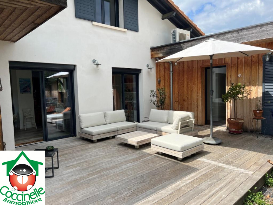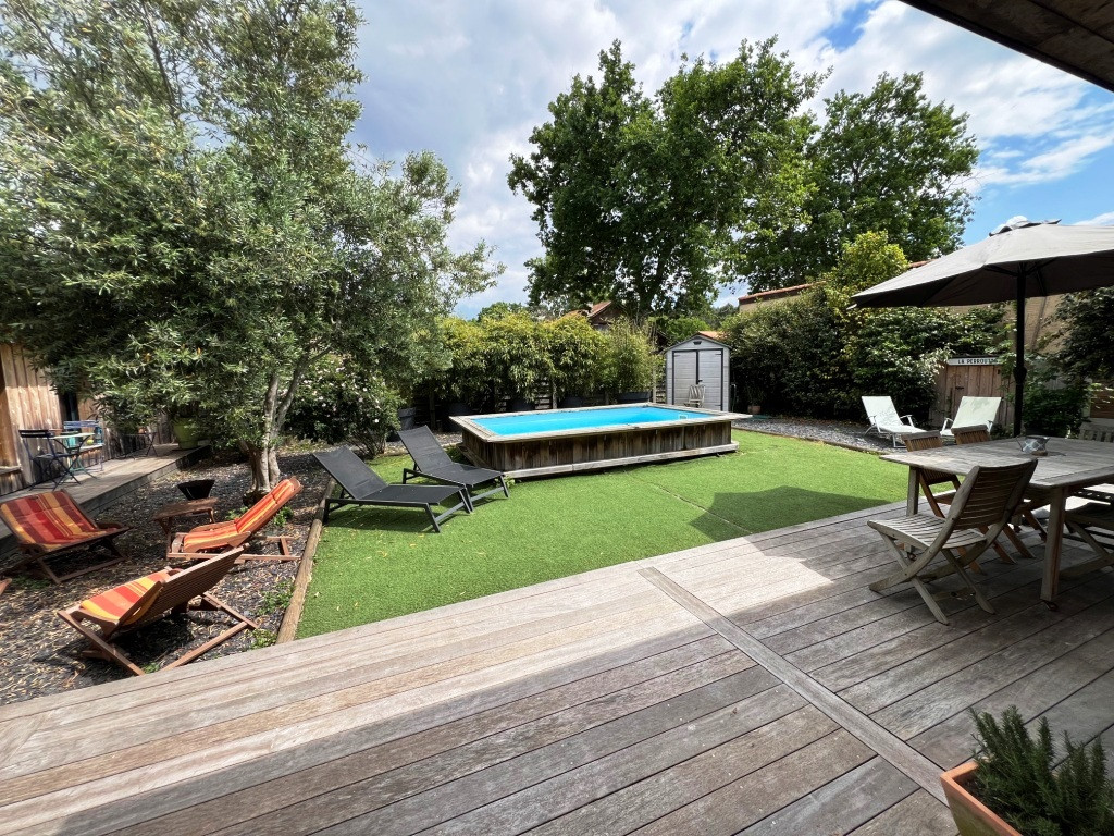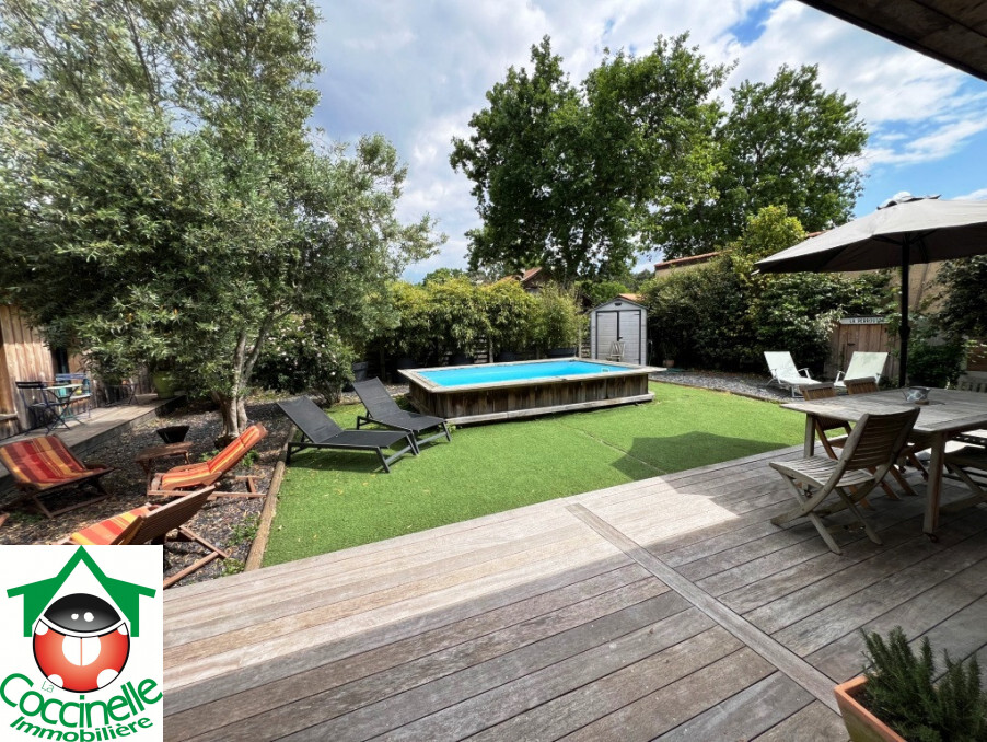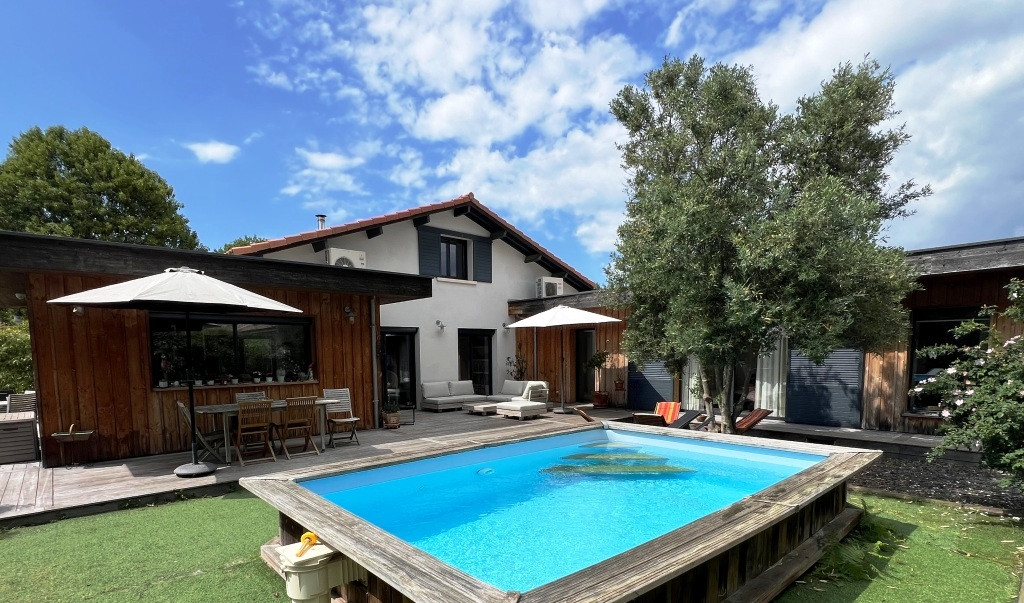 À l'extérieur, vous profiterez d'un cadre intimiste comprenant une grande terrasse bois permettant de recevoir famille et amis, un jardin verdoyant et une piscine. Un grand garage s'ajoute aux nombreuses prestations du bien.
