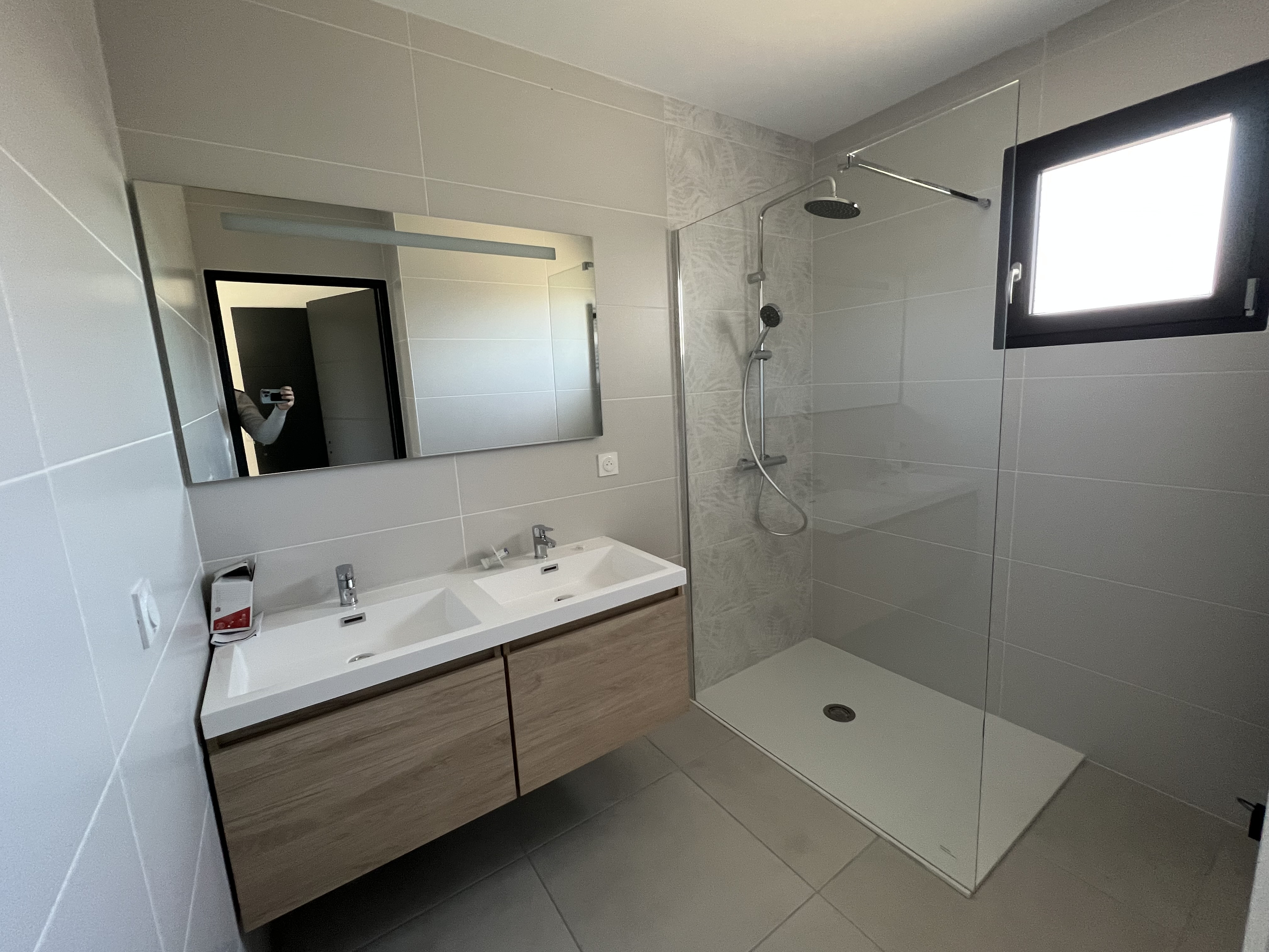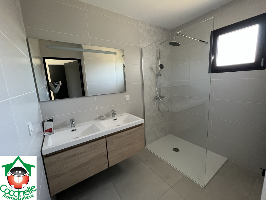 EXCEPTIONNEL ! Situé dans un quartier résidentiel et calme du Teich, maison neuve de type 4 pièces d'une surface habitable de 101 m² env. comprenant un séjour, 3 chambres dont une avec salle d'eau, cellier, et une deuxième salle d'eau. Garage de 17 m² env. Terrasse bois. Climatisation en gainable. Le tout édifié sur un terrain d'une superficie de 600 m² env.