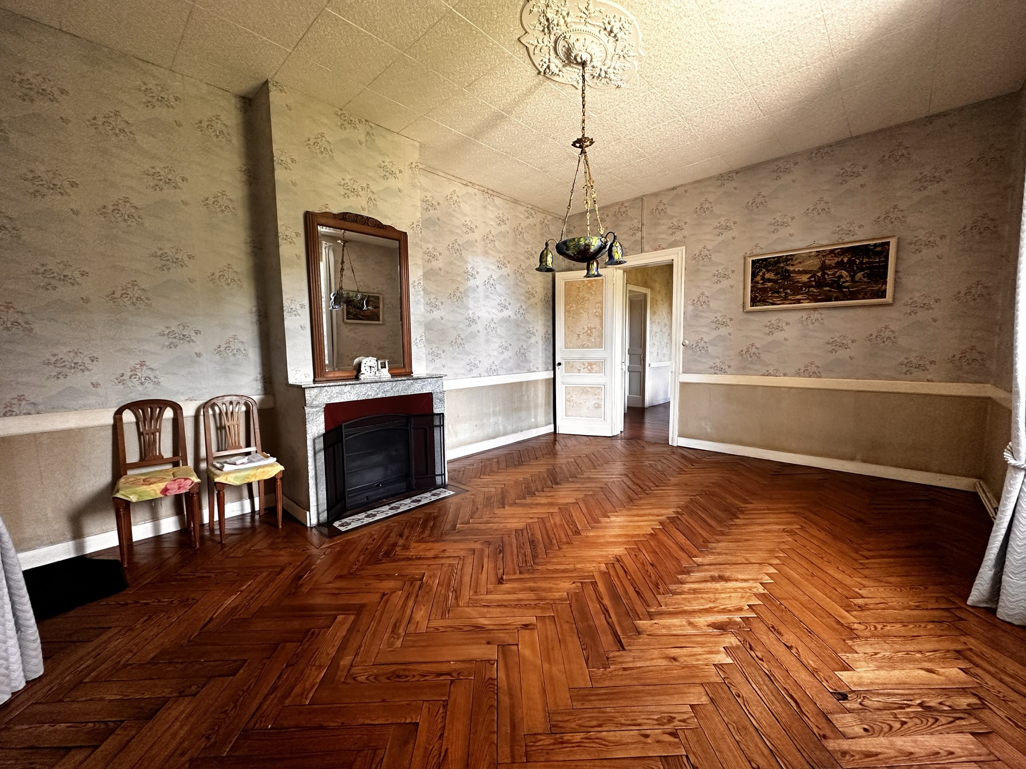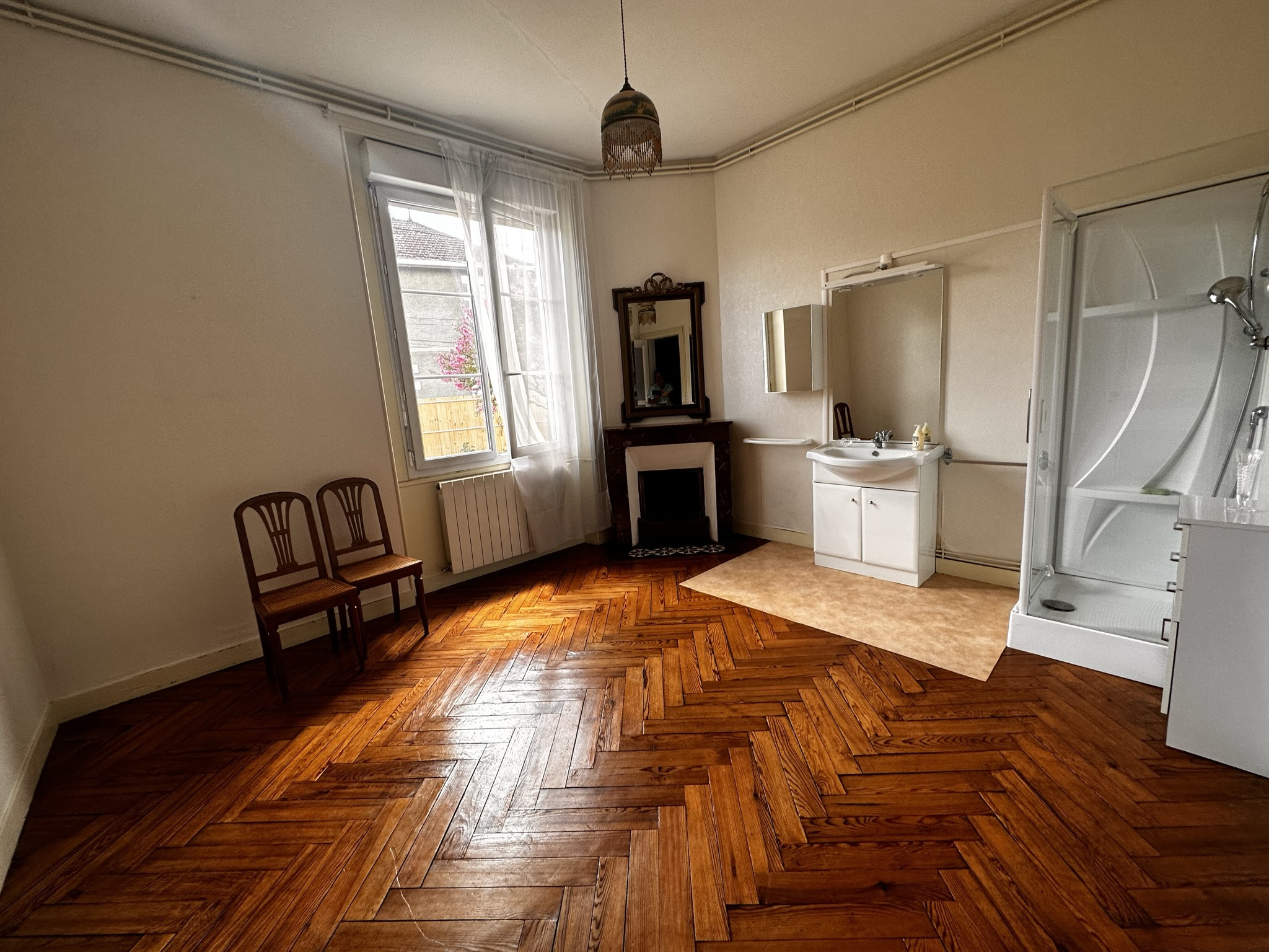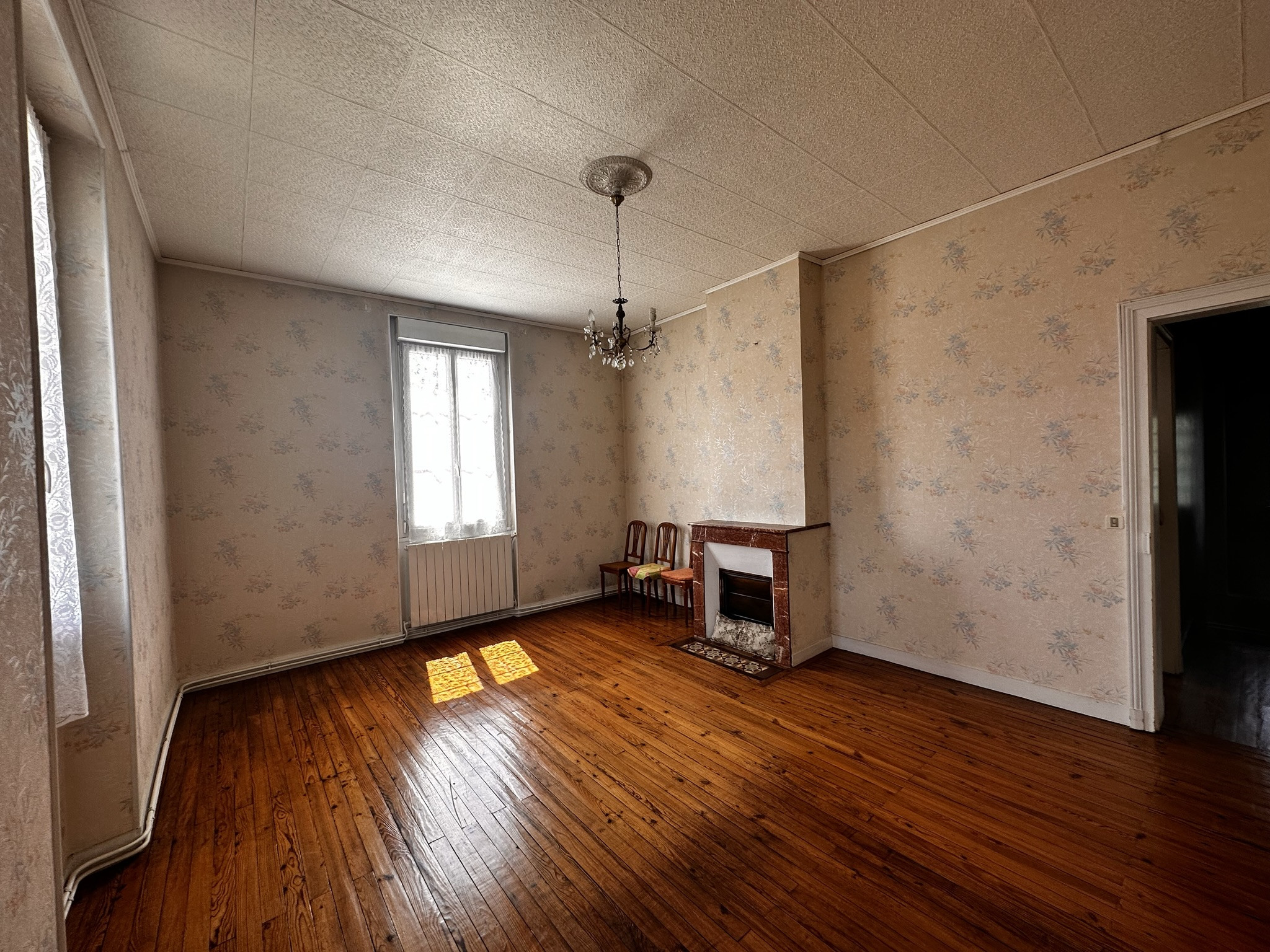 La maison se compose au rez-de-chaussée, d'une véranda de 10,55m², d'une cuisine séparée, d'une salle à manger avec une belle cheminée séparée du séjour. Ainsi qu'une chambre avec une salle d'eau et un WC séparé. A l'étage, 3 chambres avec une belle hauteur sous plafond de 3m30 dont une avec cheminée, une salle d'eau avec WC.